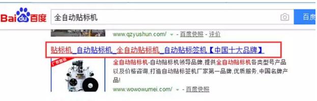 很多時候我們在做SEO的時候往往標(biāo)題會這么寫“貼標(biāo)機(jī)_貼標(biāo)機(jī)視頻_貼標(biāo)機(jī)工作原理-公司名稱”。這類常規(guī)的寫法的確可以在搜索引擎的標(biāo)題這塊加分,但是這類操作方式并無任何意義,因為你要賣貼標(biāo)機(jī),好比我前面投稿寫了一篇文章叫做不以營銷為目的的SEO都是耍流氓。如果我們換一種寫法,如下圖所示: