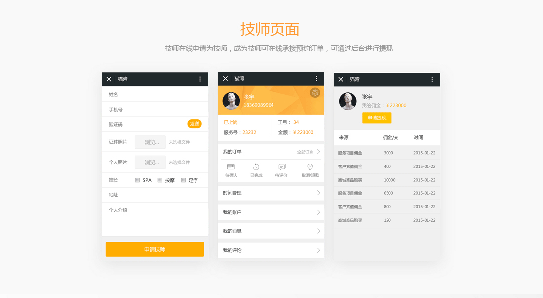 介紹:貓灣按摩商城,用戶可通過(guò)微信關(guān)注貓灣,在線預(yù)約技師上門服務(wù),可在線購(gòu)買商品。