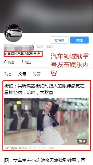 反饋:賬號(hào)簽名與定位不符。明明是個(gè)人號(hào),卻把自己描述為一個(gè)媒體機(jī)構(gòu),導(dǎo)致用戶誤解,我們推薦改成:嗅覺最靈敏的互聯(lián)網(wǎng)自媒體人。