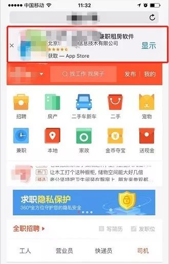 負面案例:頁面頂部出現(xiàn)帶APP引導(dǎo)內(nèi)容的的懸浮廣告