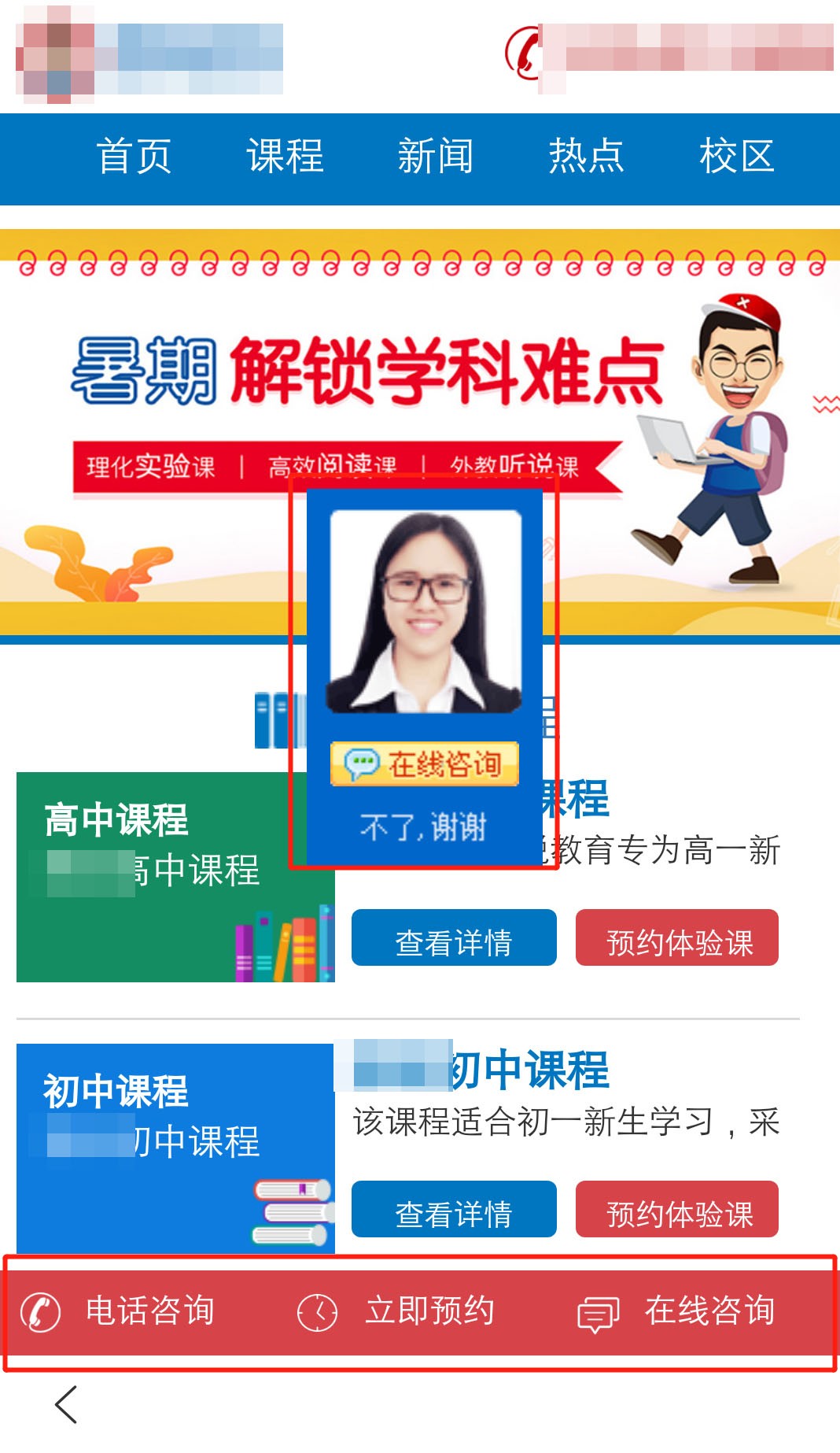 負面案例:咨詢按鈕在當前頁出現(xiàn)2次